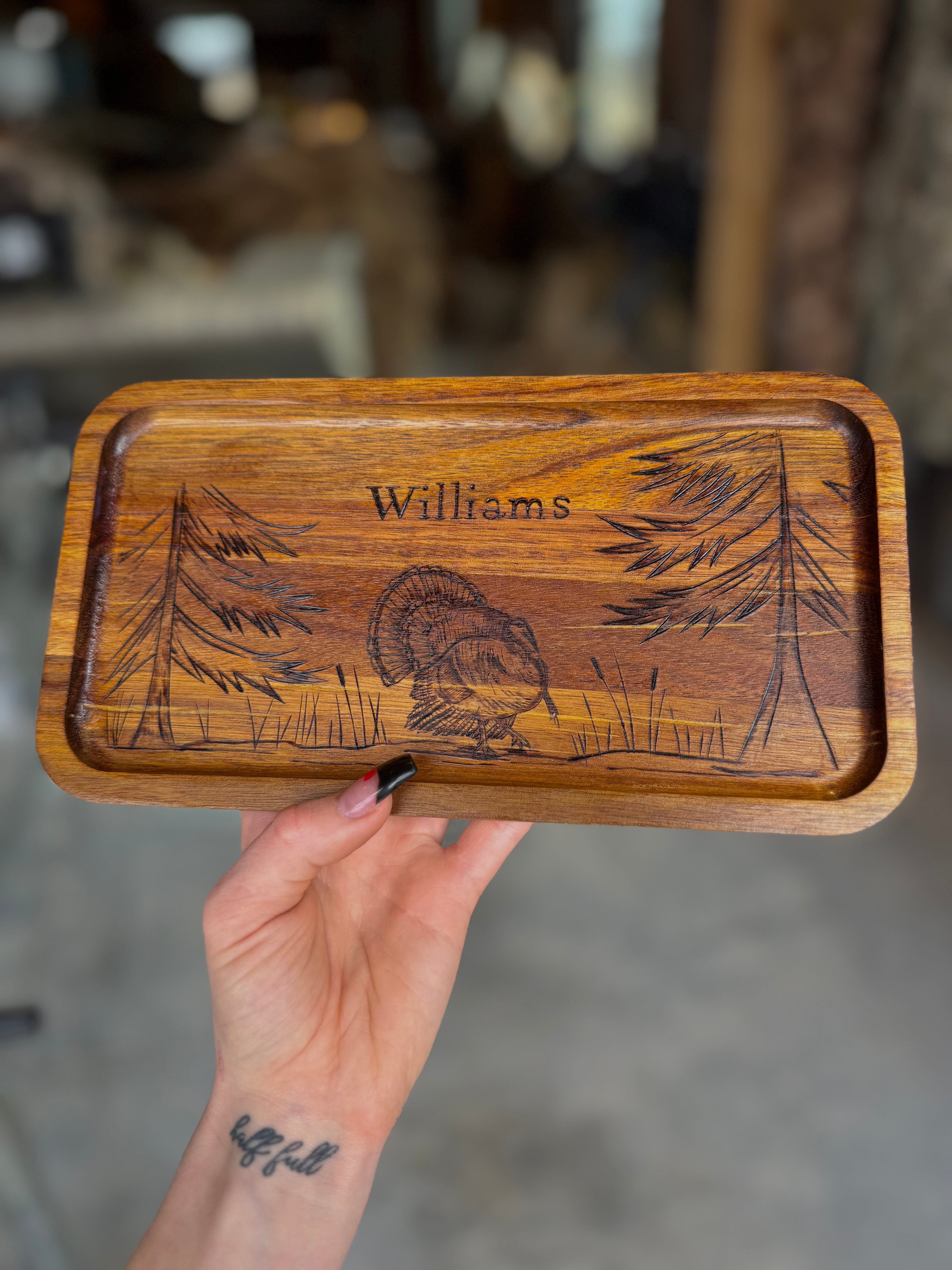 Custom wood burned design